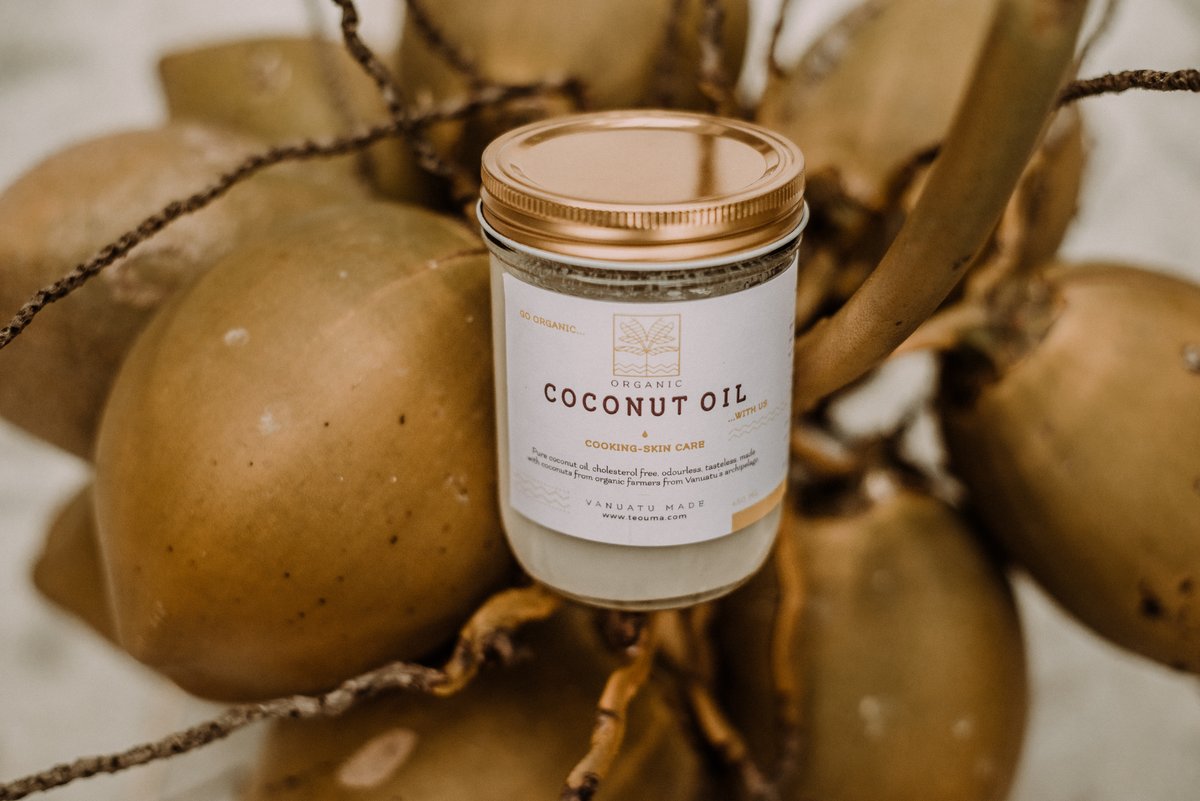 Coconut is high in fat, with a fine, edible oil that is great for cooking., There are several methods of extracting coconut oil from the copra meat. Our method of extracting Coconut Oil begins in our Epi Island refinery. We use the expeller technique to extract the crude oil. We simply compress the coconut copra, squeezing about 75 percent of the oil from the coconut meat.